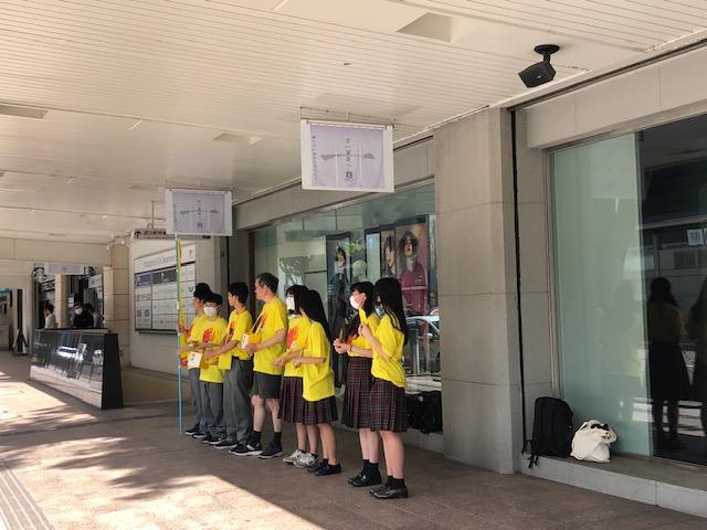 残暑が厳しい中、交代で休憩をとりながら「募金活動にご協力お願いいたします。」と声を