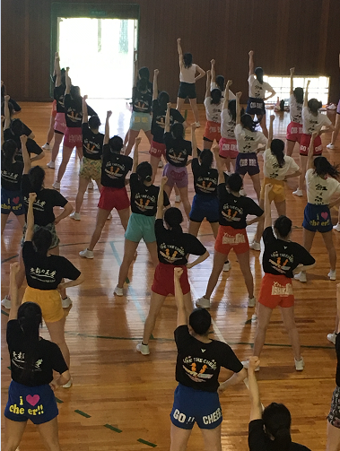 4月28日(日)小松大谷高校で行われた「新学期1日安全技術講習会」に参加してきました。北信越のチアリーディングチームが集まり、1年生は基礎基本を、2・3年生は地区大会に向けた規定演技の指導等をしていただきました。