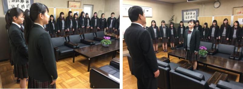 チアリーディングの高校日本一を決める「JOCジュニアオリンピックカップ/全日本高等学校チアリーディング選手権大会」の出場にあたり、本日、校長室で校長先生から激励を受けました。