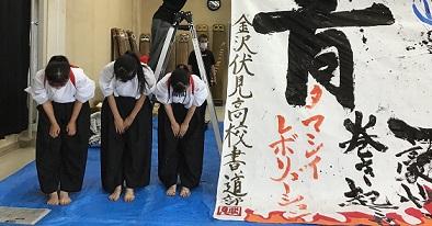 本校文化部発表会で「書道パフォーマンス」を行いました。
