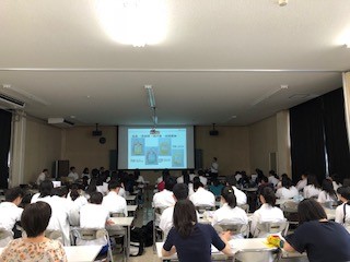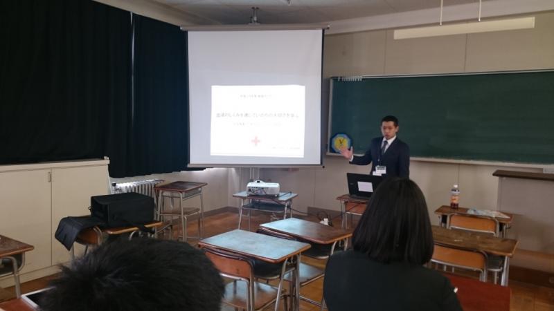 献血セミナー─石川県赤十字血液センターから主任の堀江千草さんがお越しになり、本校2階の講義室2で、VTR を交えて献血の意義についてレクチャーを受けました。特に VTR に収録されていたドキュメントには感動しました。参加者は献血の意義を知り、今後の取組に意欲を持ちました。