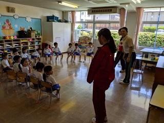 はじめは赤ちゃんが泣いてしまったり、なかなかうまくだっこできなかった生徒もお母さんのお話を伺ったり、おもちゃを使ったりしているうちに上手くだっこできるようになり時間があっという間にたちました。生徒が作った紙芝居をじっと見てくれるこどもたちに感動していました。