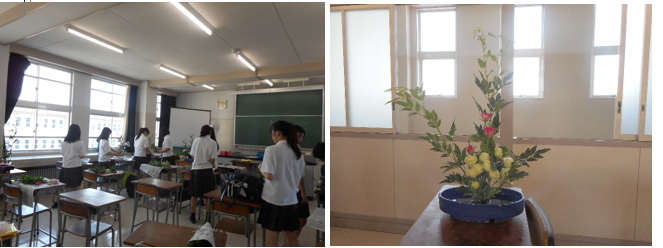 清流祭後、初めての部活動でした、清流祭の経験を経たお陰か、1年生も積極的にお花を生けられるようになりました。みんな上手に生けました。