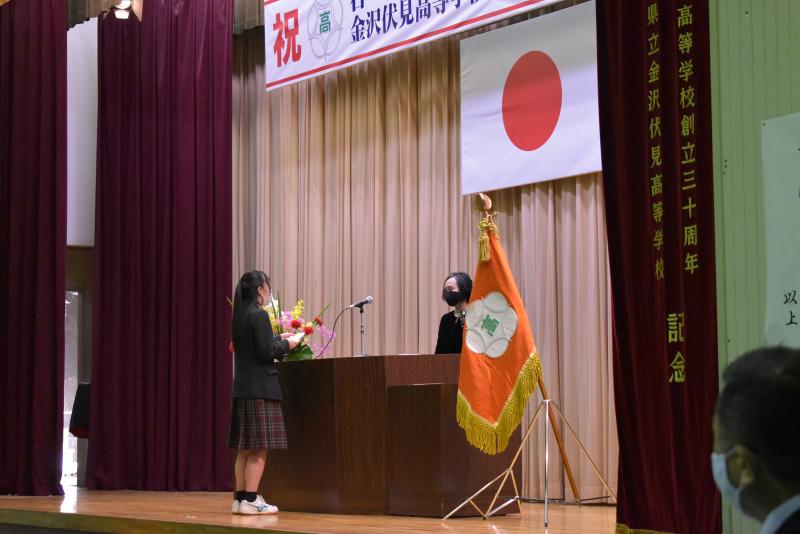 今回の式では、同窓会(白梅会)より寄贈していただいた校歌音源が披露されました。