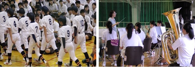 校長先生からの激励の言葉 野球部による応援
