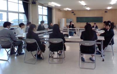 講演後の座談会には15名の生徒が参加し、講演を聴いて感じたことや、北本さんが研修中に滞在されたロシアでの経験などについて質問することができました。