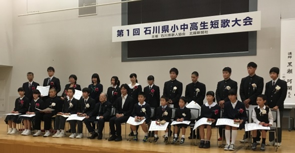 石川県小中高生短歌大会で佳作を受賞しました
