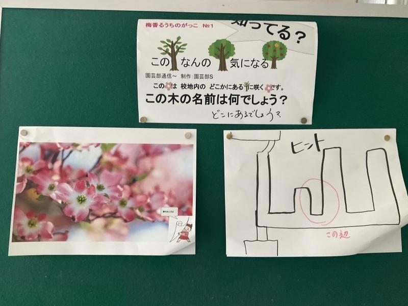 令和4年度 園芸部通信№1「梅香うちのがっこ」を生徒玄関に掲示しました。
