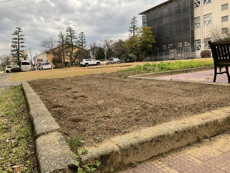 園芸部の中庭菜園は春の準備中。このあとじゃかいもを植える予定です。
