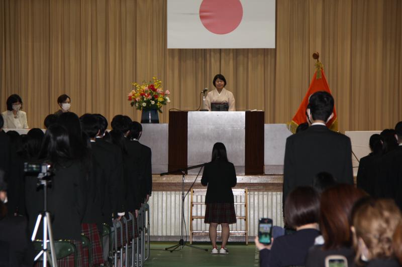 今年度の卒業生は新型コロナウィルス感染症の影響を入学時より3年間受け続けた学年でした。しかし、卒業生は様々な不自由な状況にもかかわらず、学業、課外活動に精いっぱい励み自己の進路を切り開きました。式中では3年間でおそらく初めて声を出して校歌を歌い、歌唱の場面を除いてマスクを外すこともできました。