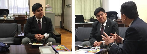 今年4月から2年生のクラスで学んでいるペルーからの留学生、マルセロ・ロドリゲス君が校長室で徳田校長と昼食を共にしながら、ペルーや日本そして石川県、伏見高校のことなどについて、スペイン語、英語、日本語と三カ国語を駆使しながら語ってくれました。