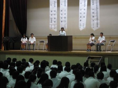 9月19日、後期生徒会役員立会演説会が行なわれました。