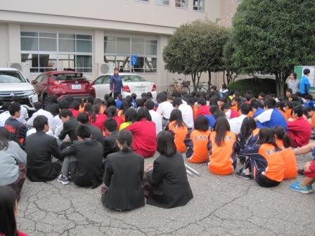 本校の陸上競技部が、スタート地点給水スタッフのボランティア活動を行いました。