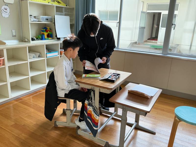 すずかけ3では、冬休みの宿題を確認中。「これだけならバッチリ頑張れる!」という頼もしいつぶやきに先生もにっこり
