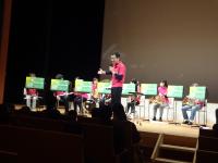 続いて、新生飯田小鼓笛隊に、楽器毎に分かれて、演奏の仕方を習いました。プロの皆さんの分かり易い指導に、3年生、4年生が食いついて学び取っている様子がたくさん見られました。吸収力の高い飯田っ子ばかりでした。