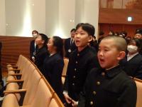 12月15日(月)今日は、市内の小学校・義務教育学校前期課程の1年生から6年生までが全員集まって、「音楽の集い」を開催しました。低中高のブロックに分かれ、合奏と合唱を楽しみました。