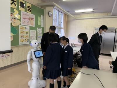 ペッパー君の動きをプログラミングし、実際に動かしてみる体験をしました。
