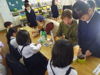 12月8日(月)雨の降る寒い日でしたが、1年生は、生活科で作ったおお茶で、地域の方をおもてなししました。