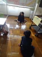 5,6年生が対象の「子ども熟議」では、講師の兵庫教育大学大学院の澤野先生をお迎えし、子ども達が企画している「飯田っ子とろ山祭」や「珠洲音頭」はそもそも何のためにやるのかな、ということを考えました。