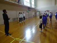 準備運動も和やかに、他校のお友達と知り合うきっかけとなりました。その後の、練習や検定では、グループのメンバーの試技に、拍手をおくり、頑張っていることを讃え合いました。