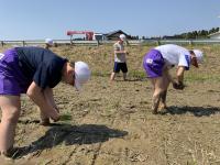9月2日(土)の早朝に、5年生が稲刈り体験をしました。5月に田植え体験させていただき、今度は実った稲穂を刈り取りました。きた会さんのお世話で、鎌を使って刈り取り、わらで二束を縛り、はざかけをしました。刈り取るだけでなく、縛って束にするのも四苦八苦しましたが、そのうちに何とか恰好がつくようになった5年生と職員でした。お米を食べるまでに、大変なお世話があるのだなあ、と改めて知ることができました。今日のご飯はいつも以上に甘く感じるのではないでしょうか。