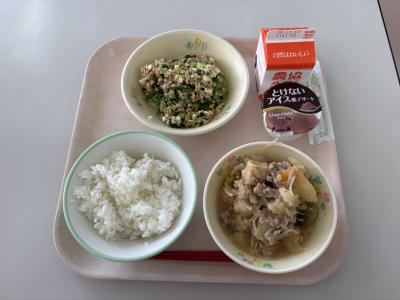 6年生のリクエスト給食「アイス」を給食に出すことができないか考え、献立に入れました。