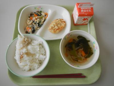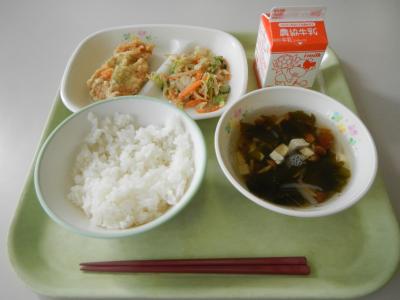 本日の主菜はリクエスト給食で「磯辺とり天」でした。
