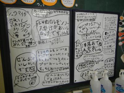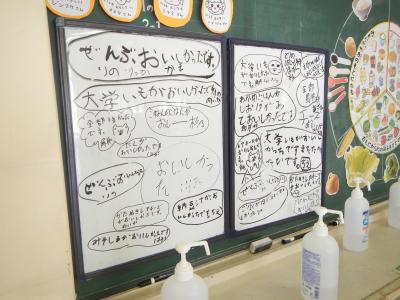 給食の感想を書くホワイトボードも、今日は月曜日ですが真っ黒になりました。