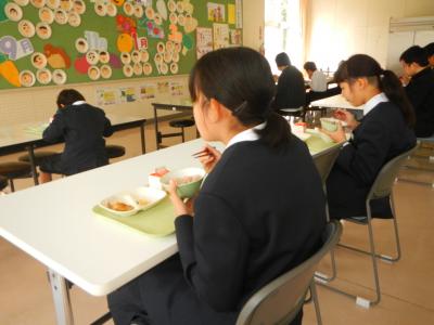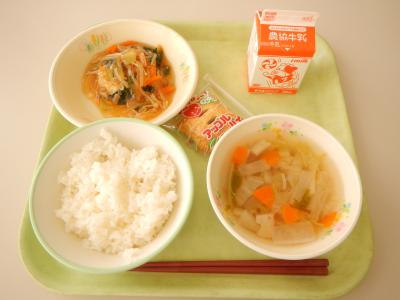 今日は1年間最後の給食ということで、感謝の言葉と、いつもよりもとーっても大きい声の全員の「ごちそうさま」をいただきました。