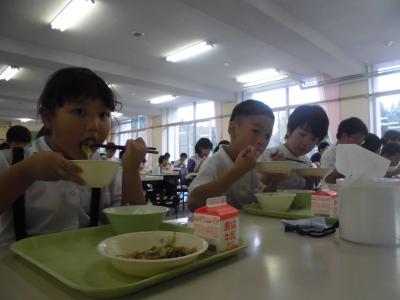 焼きそばは、みんな大好きで、今日も残食ゼロ、ほぼ時間通りに食べ終わっていました。