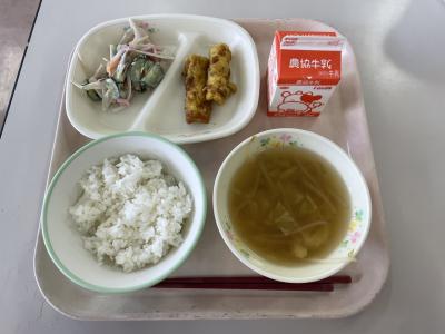 今日の給食は、ちくわのカレー揚げでした。