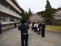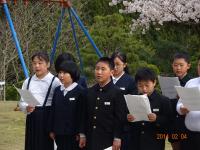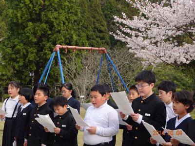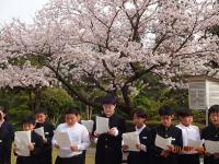 最後は、今盛りと咲いている 校舎前の桜の樹をバックにして歌いました。くるしくても つらくても きっとあしたはやってくる 本当にそうですね。