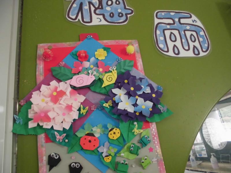 ランチルームを明るい梅雨仕様にしていたところ、調理員さんから素敵な飾りをいただきました。