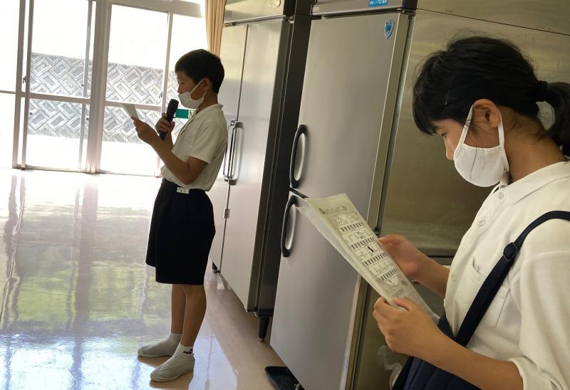 給食委員が「ヤムウンセン」や「ガパオライス」の紹介をしました。