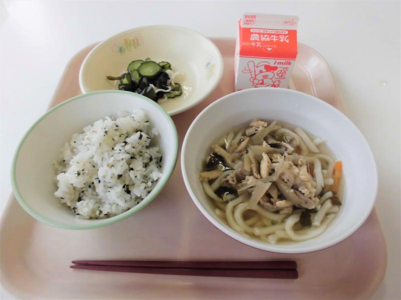 うどんと混ぜご飯という組み合わせの献立の力は絶大で、12時45分にはすべての児童が食べ終えていました。