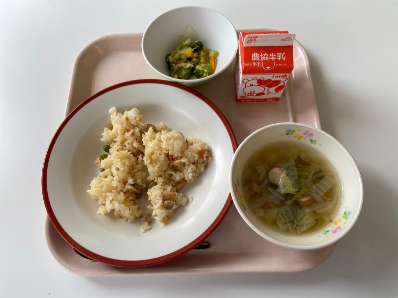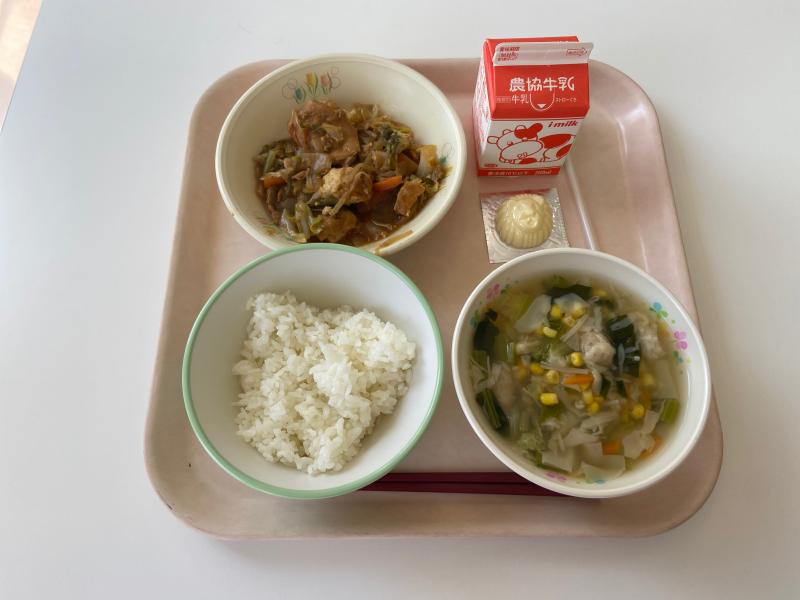 ゴールデンウィーク明けの給食はそぼろ丼です。