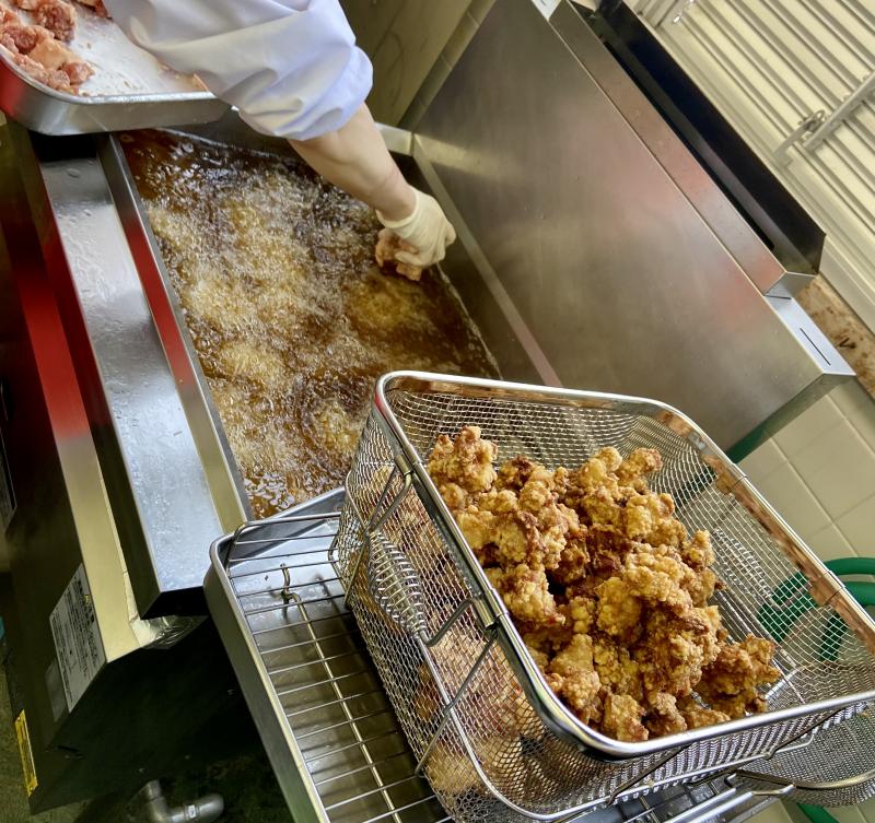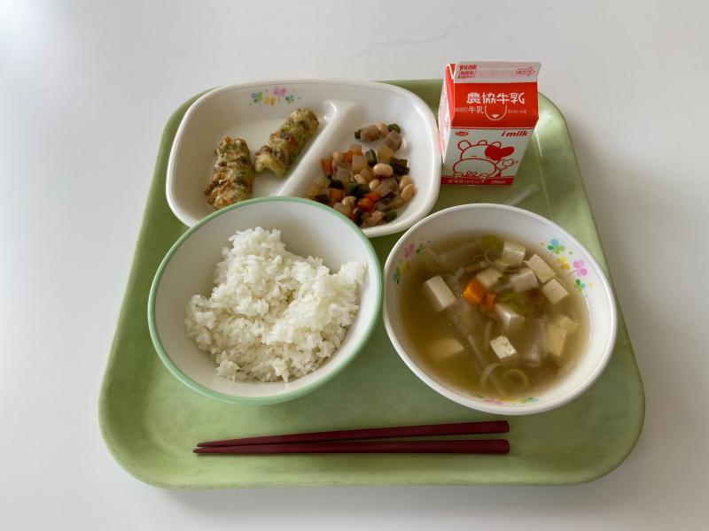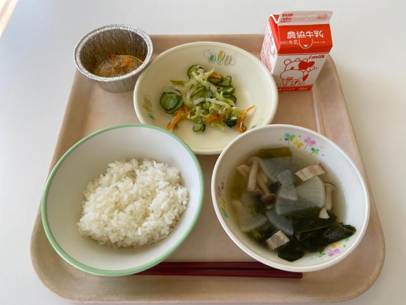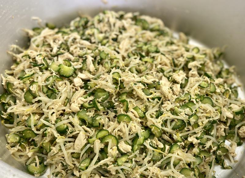 ささみとキュウリの和物のササミは、調理員さんが一つ一つ手作業でほぐしてくれています。結構地味に時間のかかる作業ですが、調理員さんは子供たちが食べやすいように丁寧にほぐしてくれました。