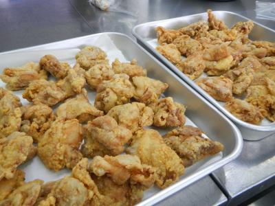 給食では鶏肉で作っています。子どもたちにははっきりと「からあげおいしかったです!」と言われました。