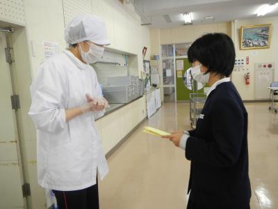6年生から調理員さんへ感謝を伝えるお手紙が渡されました。