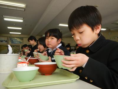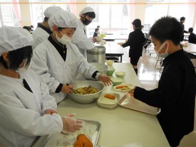 6年生がいなくなって初めての給食でしたが、みんなで協力して給食当番をすすめていました。