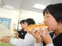 給食委員会が、いただきますの挨拶の際に、コッペパンにコロッケやソテーを挟んでもよいこと、のどにつまらないように、口につめこみすぎないことを話しました。