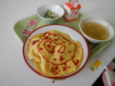 オムライスを食べる前に、ケチャップで絵をかいてくれた子がいました。