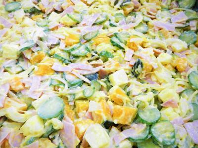 珠洲のかぼちゃが入ったかぼちゃサラダを作りました。カボチャとじゃがいもを半分ずつ入れたサラダです。