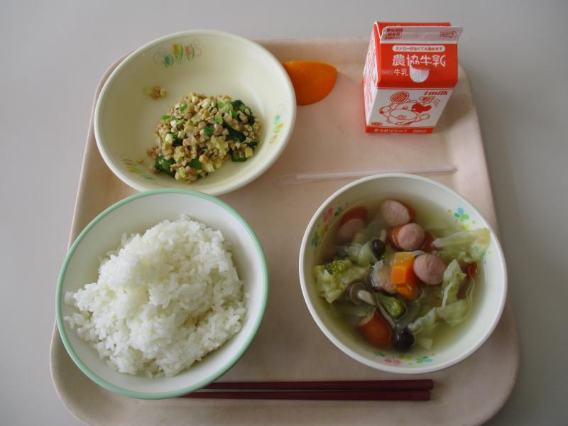 18日の給食は五目うどんでした。