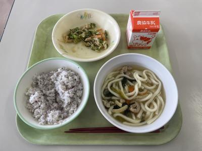 18日は、6年生のリクエスト給食の五目うどんでした。