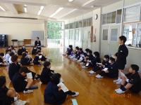 4月26日(水)交通安全教室を開催しました。高学年は、警察署の方をお迎えし、自転車の安全な乗り方を学びました。低学年は、珠洲ロータリークラブさんのお世話で、バスを使って安全教室に参加しました。