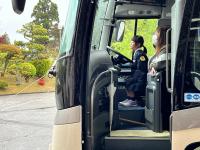 低学年の安全教室では、まず歩道を歩くとき、交差点で待つとき、バスの近くを歩くときの注意点を聞きました。次にいよいよ体験です。バスの運転席に乗って、運転席から小さな子どもたちが見えるかどうか確かめました。児童たちは、初めての運転席からの眺めにびっくりして、さらに友達が見えなくなるときがあることにもびっくりしていました。みんな「安全な歩き方がわかりました」「今日から気を付けて歩きます」「バスが横に動いてびっくりしました」と口々に感想を伝えてくれました。今日の学びを生かして、毎日気を付けて登校してください。