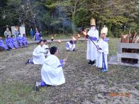 4月27日(木)宿泊体験の夜のプログラムは、5,6年生がプロヂュースした「キャンプファイヤー」です。火の神が現れ、われら5,6年生に「友情、愛、・・・」の火を授けてくれました。その後は、各たて割りグループによる出し物大会が繰り広げられました。火の神のシナリオも、出し物のクイズやゲームも自分たちで工夫して創り出してくれました。中身もとても凝っていて素晴らしかったです。そして何より25人それぞれの出番や活躍があって、みんなの反応があちこちから響いて、みんなで楽しむ素晴らしい2時間でした。子ども達は、協力する心、自分たちで考え行動する力を存分に発揮してキャンプファイヤーを創り上げました。