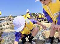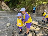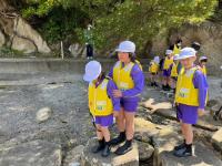 4月28日(金)4年生~1年生は、バス遠足で海洋ふれあいセンターで磯観察をしています。前日、4年生はどうすれば一年生が安全に体験できるかを考えて、グループで話し合いをしていました。みんなが楽しみにしていた磯観察、写真のとおり、上級生が下級生の安全を考えて行動してくれています。海の水もきっと透明で、たくさんの生き物が観察できると思います。