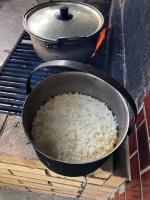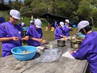 4月28日(金)午前は、5,6年生は野外炊飯にチャレンジしました。かまどに薪をくべ、火をおこします。ご飯も上手に炊けました。カレーも成功しました。準備良く、協力して炊飯を体験しました。お家でもお手伝いしているのかな、と思います。快晴の下、友達といただくカレーは一段とおいしく、思い出に残る味だと思います。